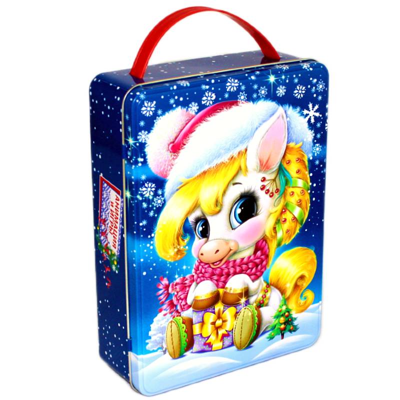 Сладкий новогодний подарок в жестяной упаковке весом 543 грамма
