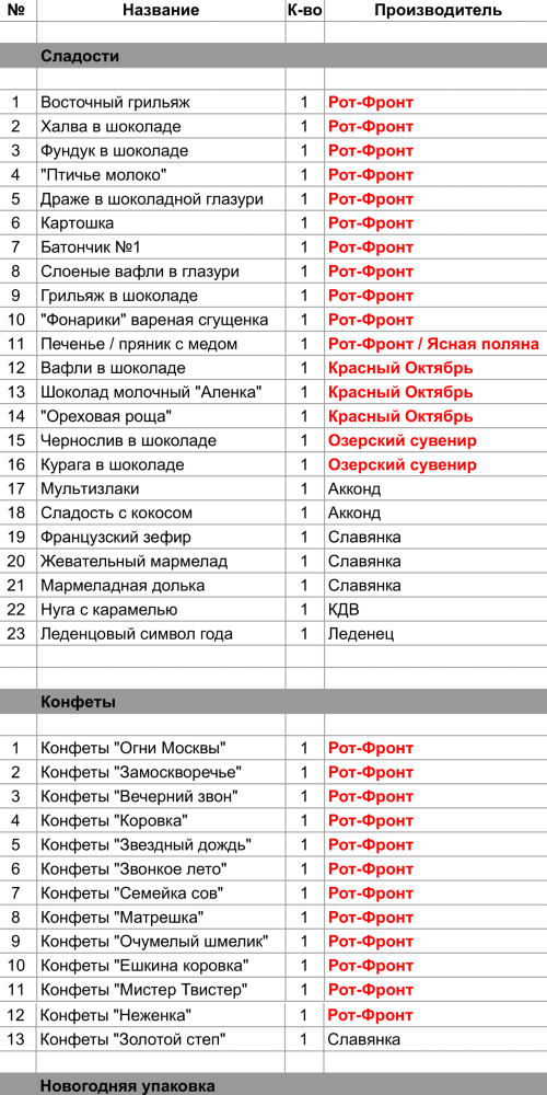 Опубликовано в Составы подарков