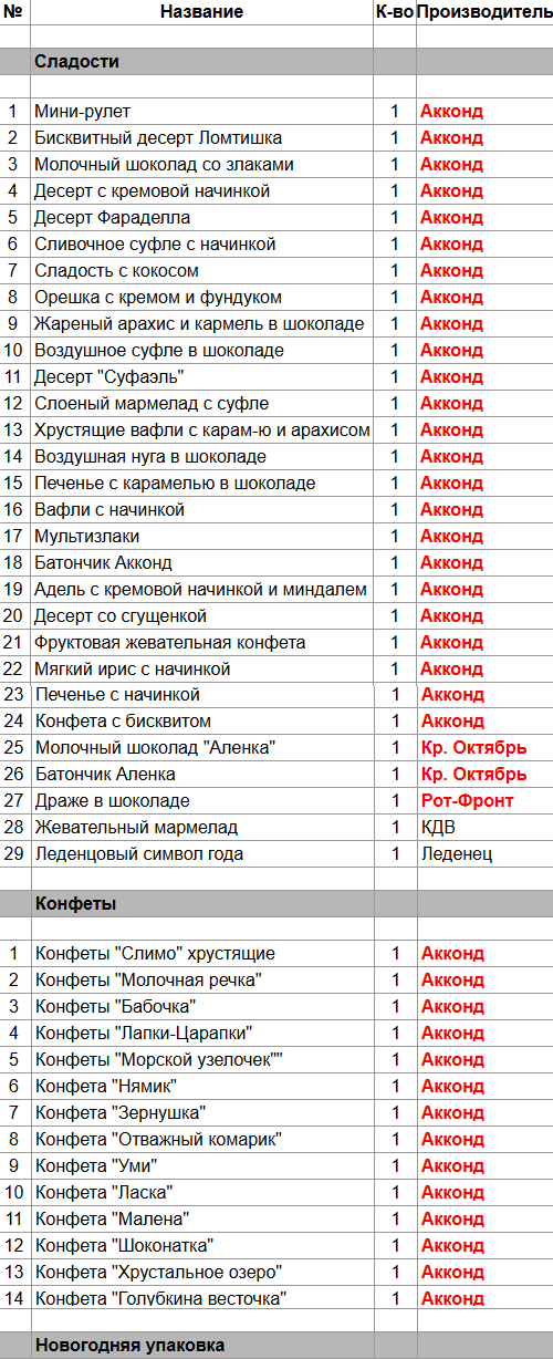 Опубликовано в Составы подарков